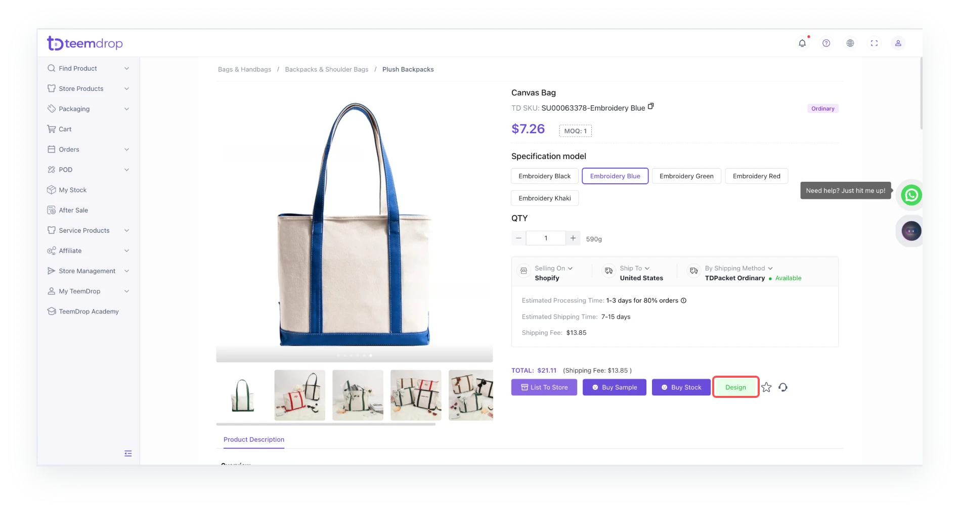 - Select the SKU you need to design