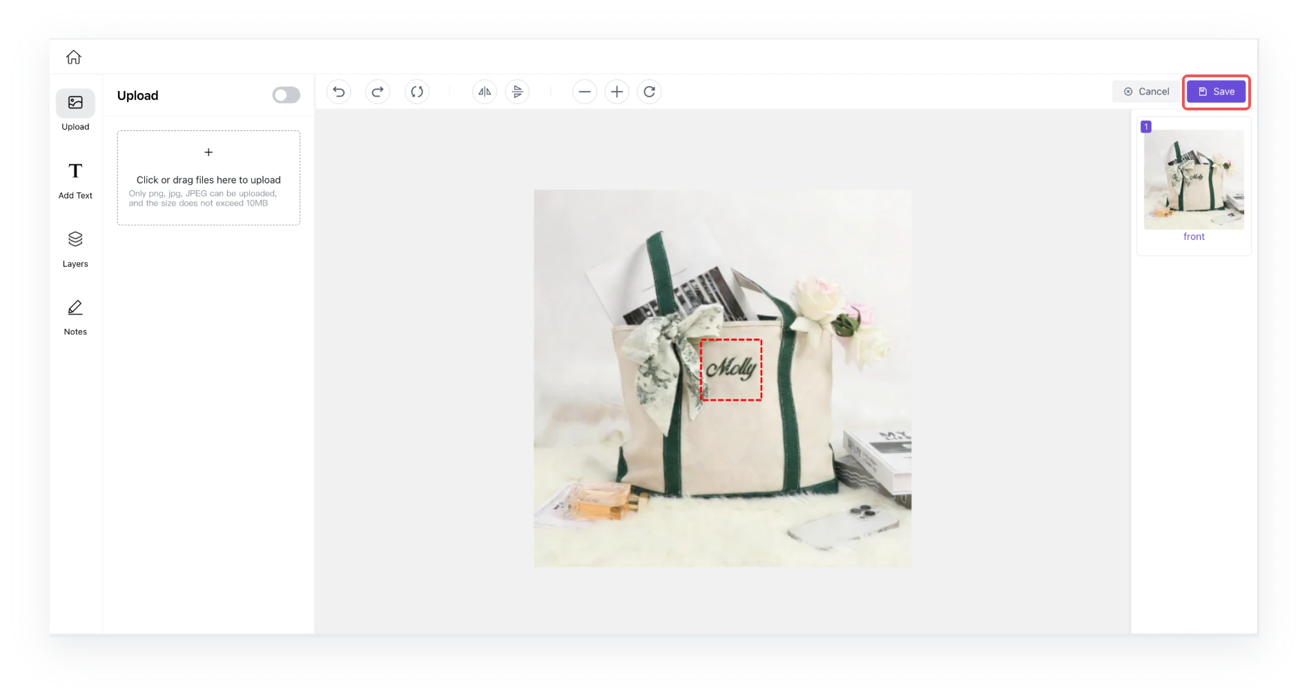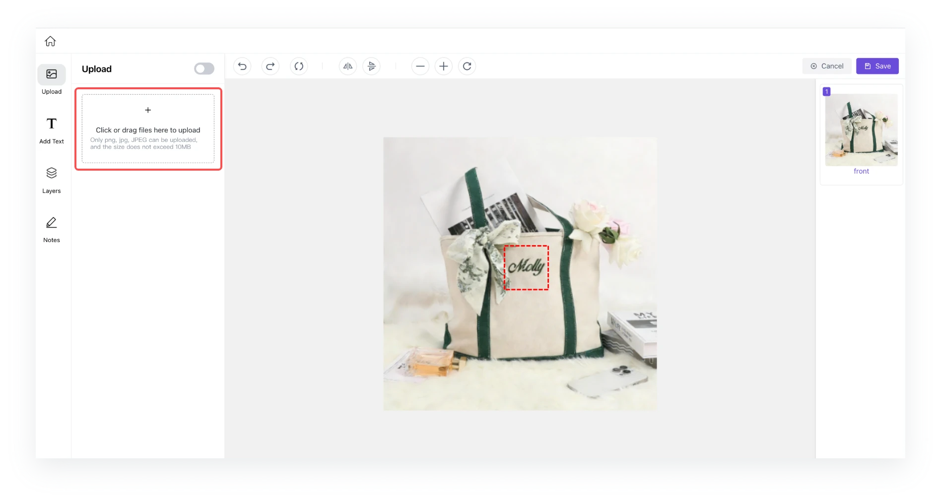 - Upload the image or text you need to print.