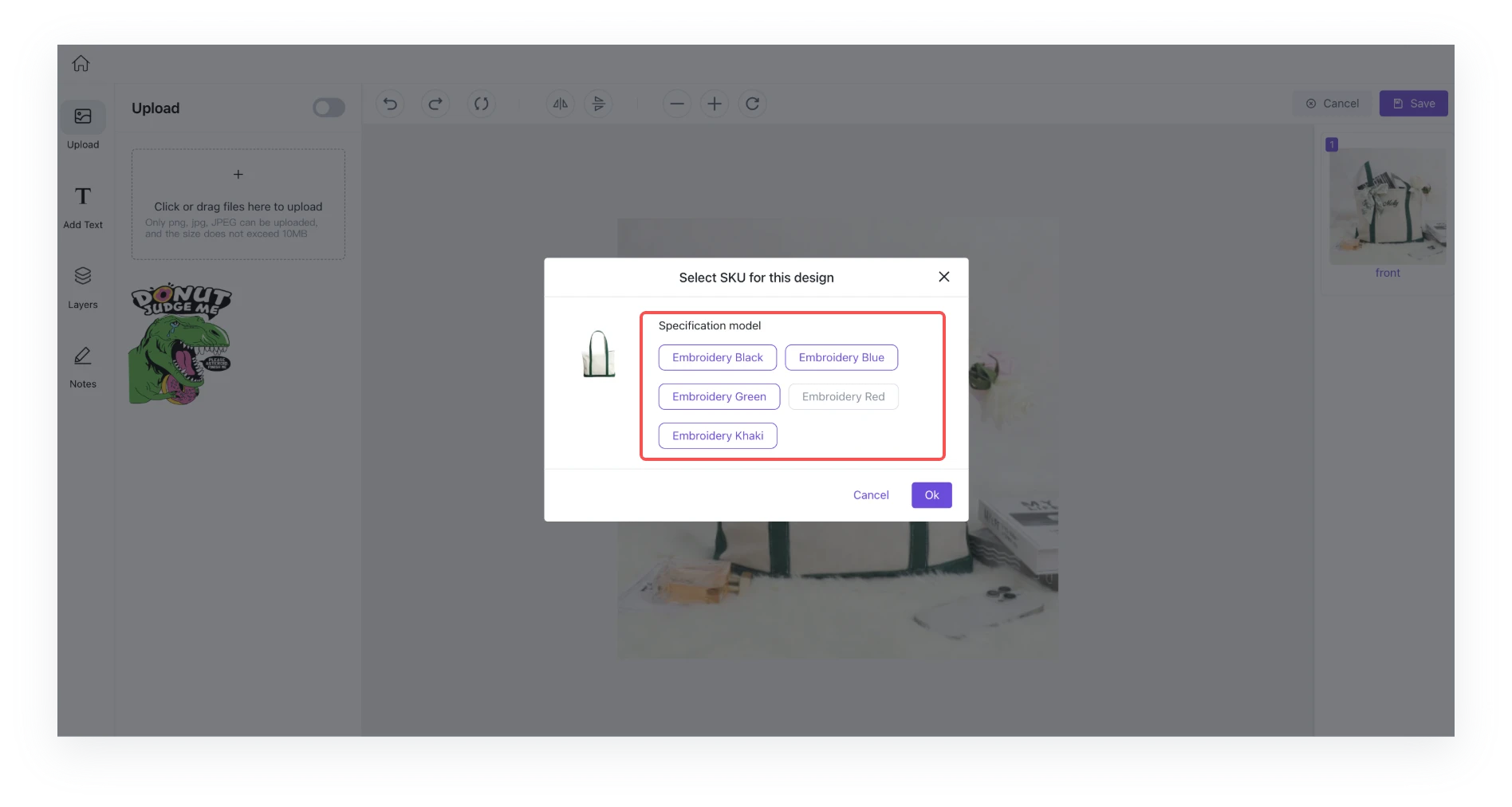 2. Select SKU for design