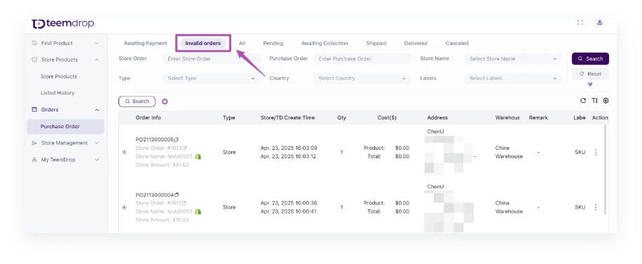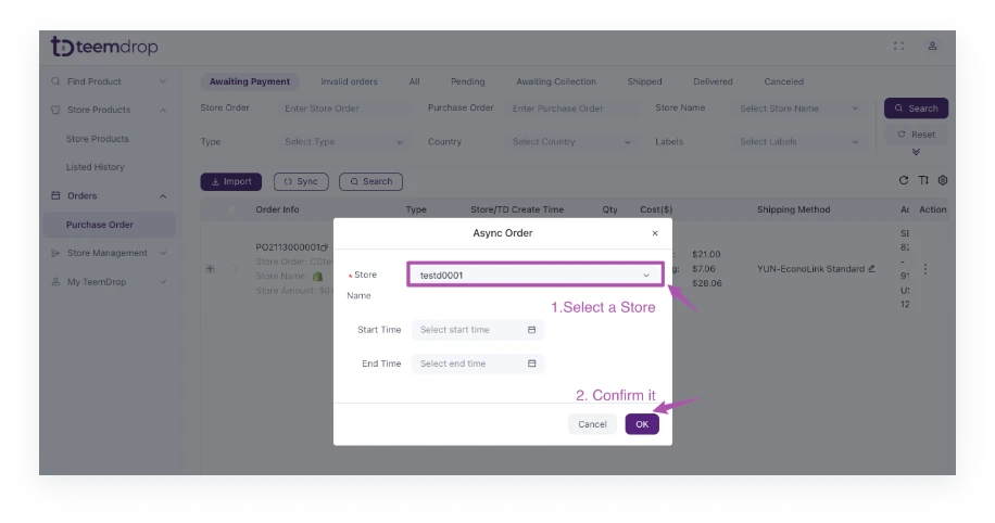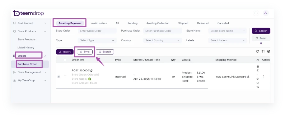 - Note: TeemDrop can only process the 'unfulfilled' orders.