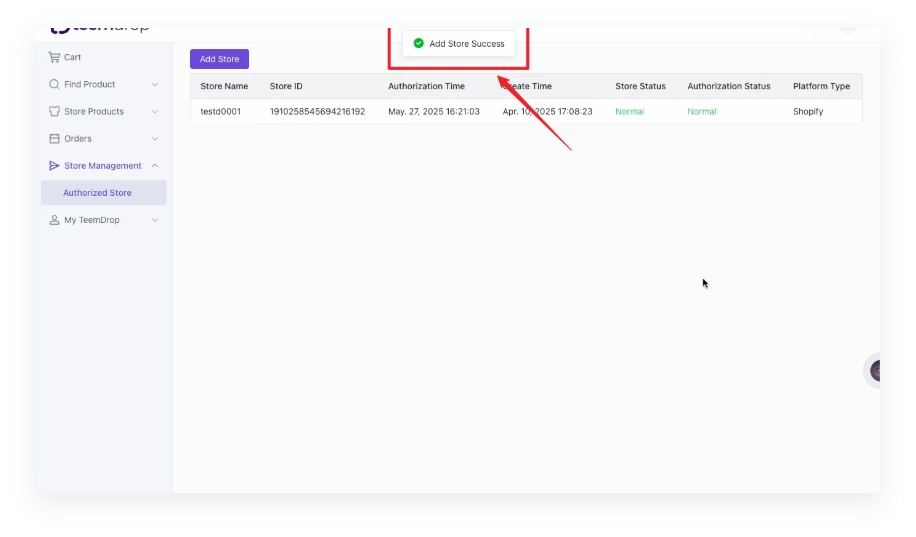 Go to 【Store Management】 > 【Authorized Store】>【Add Stores】, click【Authorize】
